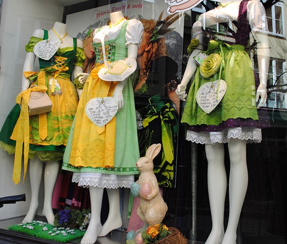 А ещё в Германии есть такая свадебная традиция: невеста должна опозориться перед своей свадьбой. Поэтому на площади можно встретить молодёжные компании смешно одетых девчонок и парней. Вот эта невеста-свинка что-то продавала прохожим, поминутно ржала хрюкала над собой, да и её подружки тоже, всем было весело: